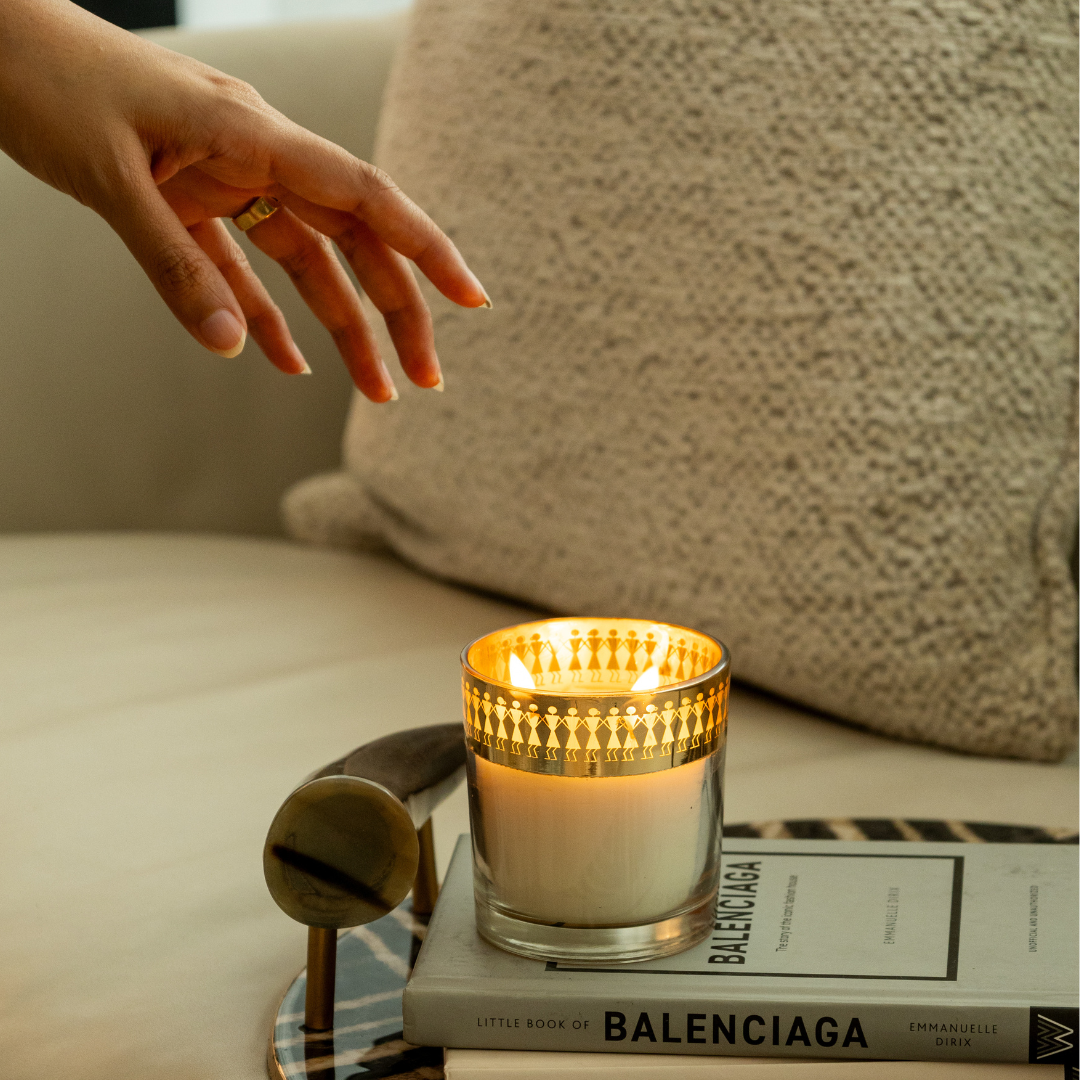 - Place the candle on a heat-resistant surface, away from drafts and flammable objects.