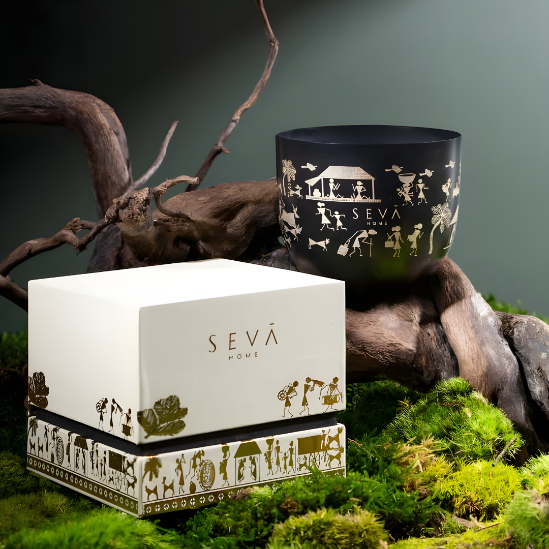 Discover the Metal Heirloom Candle, a modern rendition of the traditional metal container, celebrating the life and artistry of the Warli tribe in Maharashtra. Embrace the rustic fragrances of marigold, wood, earth, and musk as they fill your space with the ethereal scents of nature. Together, they create a fragrant tapestry that captures the spirit of India- majestic, vibrant, and eternal. Available in both Classic and Large size.