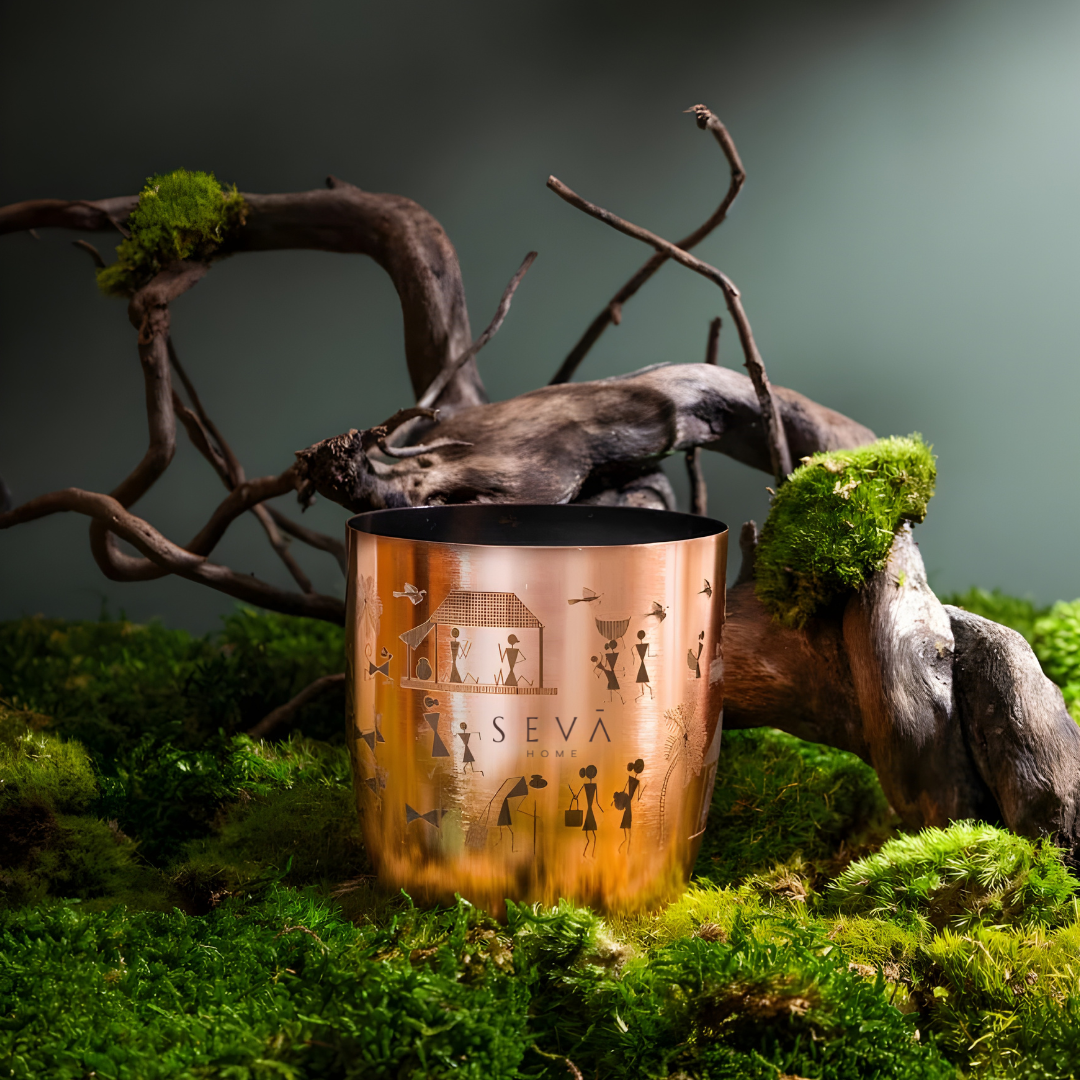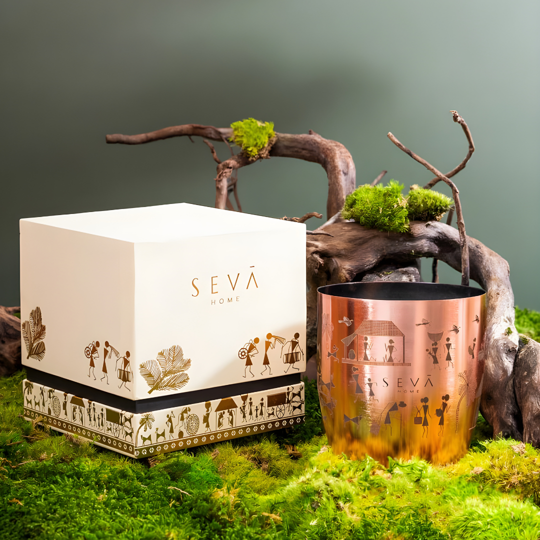 Discover the Metal Heirloom Candle, a modern rendition of the traditional metal container, celebrating the life and artistry of the Warli tribe in Maharashtra. Embrace the rustic fragrances of marigold, wood, earth, and musk as they fill your space with the ethereal scents of nature. Together, they create a fragrant tapestry that captures the spirit of India- majestic, vibrant, and eternal. Available in both Classic and Large size.