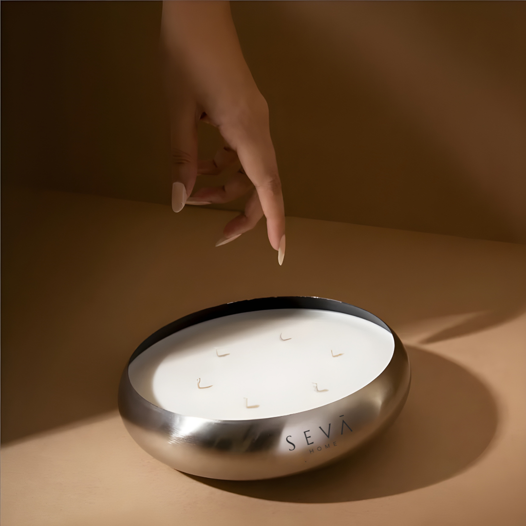 This beautifully handcrafted candle in a metal container is our take on a modern urli. Immerse yourself in the aromatic embrace of premium fragrances, as it infuses the air with a sense of tranquility and serenity.