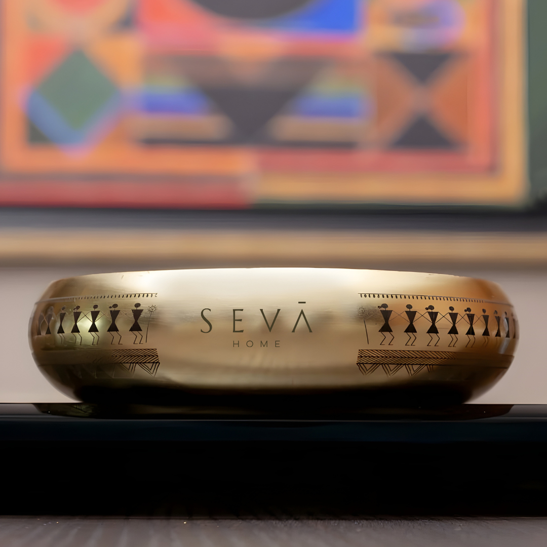 This modern Urli ,captures the vibrant Tarpa Dance, a celebration of joy and unity among the tribal community. The dancers gracefully follow the tarpa player, never turning their backs to the music, as they spin and twirl in harmony. Symbolically, the circle formation of the dancers represents the interconnectedness and cyclical nature of life, adding depth to this lively depiction of the Tarpa Dance in Warli art.