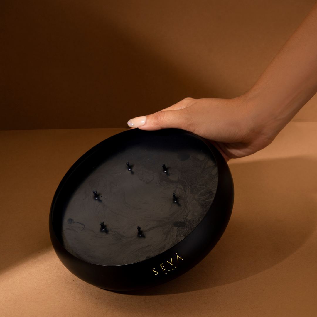 This beautifully handcrafted candle in a metal container is our take on a modern urli. Immerse yourself in the aromatic embrace of premium fragrances, as it infuses the air with a sense of tranquility and serenity.
