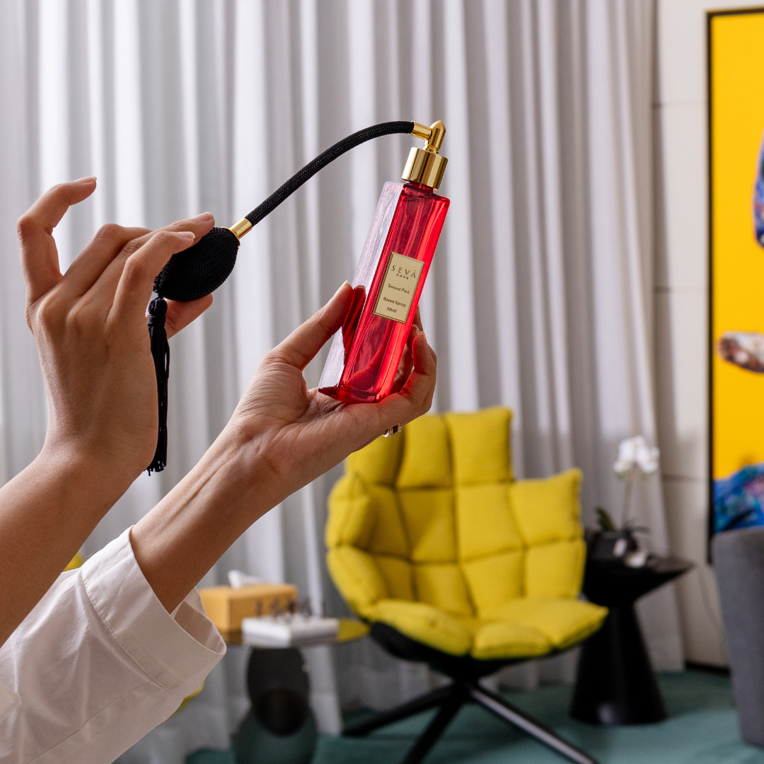 Transform your space instantly with our signature room spray. Infused with the finest, long-lasting fragrances, this elegant spray envelops your home in a captivating and sophisticated aroma. Housed in a sleek, designer bottle with a delicate pump, it combines effortless style with exceptional quality. Elevate your environment with a touch of opulence and enjoy a refreshing burst of luxury with every spritz.